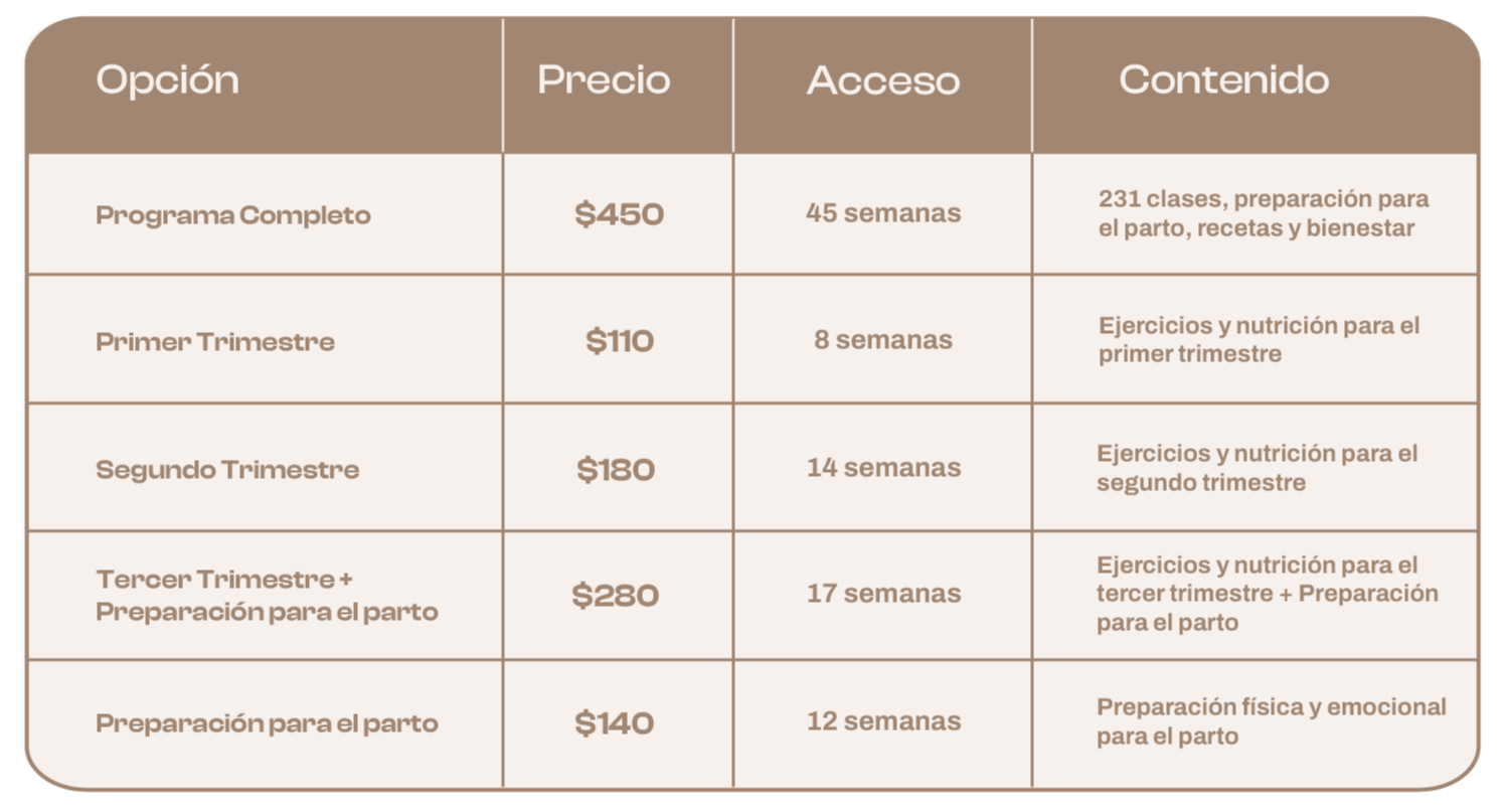 Si prefieres empezar por trimestres, tambi茅n puedes elegir acceder solo a uno o dos trimestres, o agregar el m贸dulo especial de preparaci贸n聽para el parto seg煤n lo necesites.